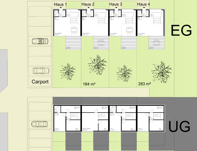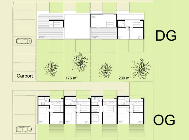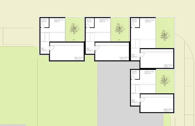 Lageplan Nord-Süd-TypUntergeschoss und Erdgeschoss Nord-Süd-TypObergeschoss und Dachgeschoss Nord-Süd-TypSchnitt Nord-Süd-TypLageplan Ost-West-TypUntergeschoss und Erdgeschoss Ost-West-TypObergeschoss und Dachgeschoss Ost-West-TypSchnitt Ost-West-TypLageplan Hof-TypErdgeschoss Hof-TypObergeschoss Hof-TypUntergeschoss Hof-TypSchnitt Hof-Typ