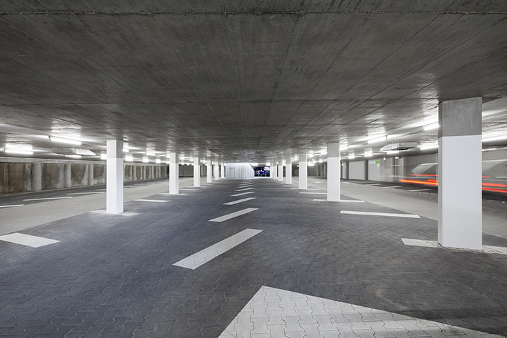 Die auf Platzebene gelegenen Einzelhandelsflächen präsentieren sich transparent und schwellenfrei an der überdeckten Wegeverbindung. Sie erhalten über die räumliche Verflechtung mit den Plätzen eine jeweils unverwechselbare Adresse mit einem lebendigen städtischen Vorfeld.
