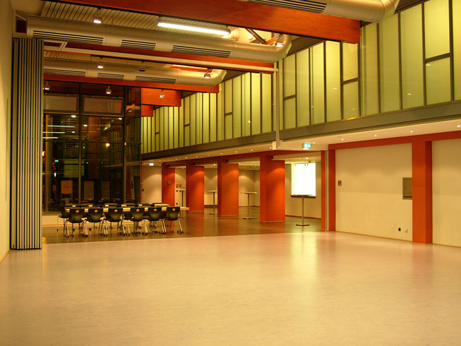 Im Zuge der Maßnahme wurde dem langjährigen Wunsch der Jugend und Vereine nach einem Veranstaltungsraum entsprochen. Dieser wurde seitlich an das neu geschaffene, barrierefrei zugängliche Eingangsfoyer angehängt. Der Mehrzeckbereich ist wahlweise für den Sportbetrieb oder auch für externe Veranstaltungen nutzbar.