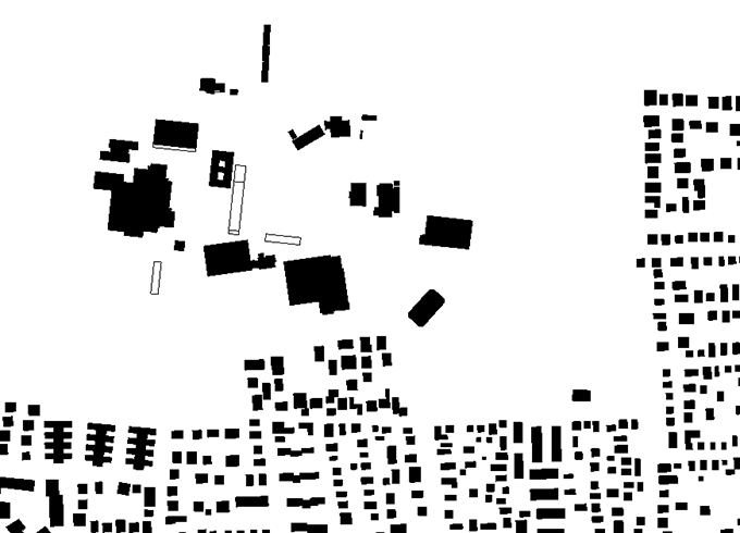 Lehrerparkplatz, Andienung, Fahrräder und sonstige Funktionsflächen sind an den „Rändern“ verortet.